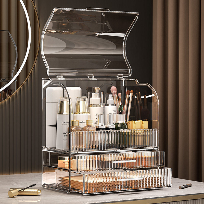 收纳盒化妆品桌面抽屉式梳妆台置物架护肤品口红防尘透明收纳盒子