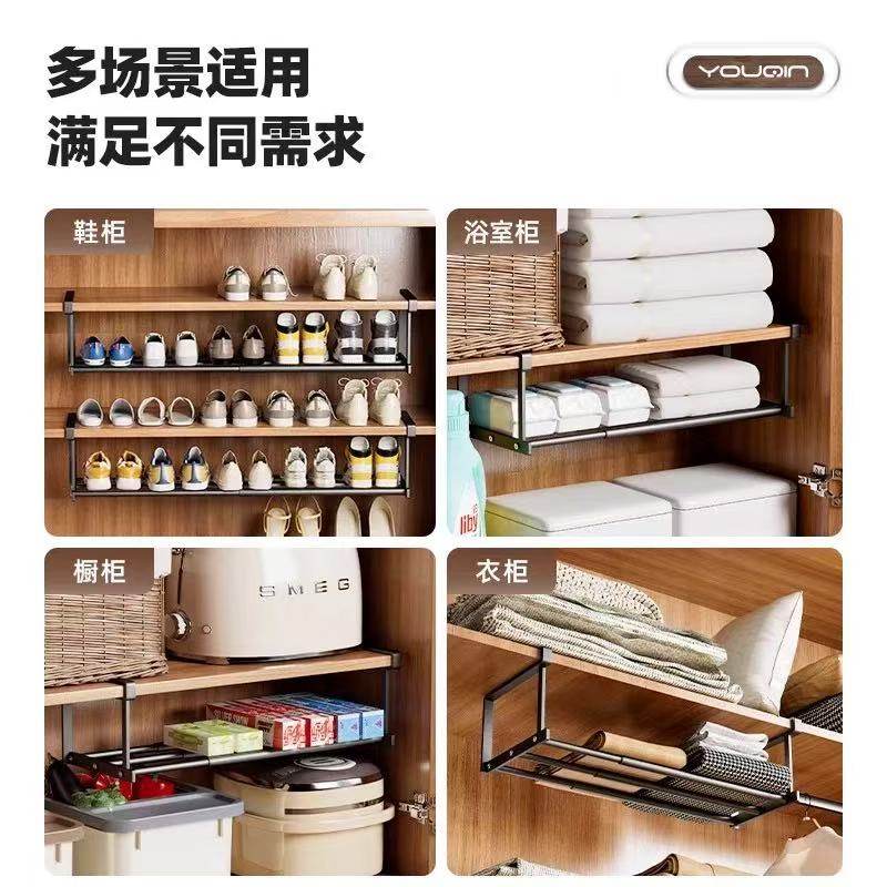 不锈钢下挂式鞋架可伸缩鞋柜分层隔板神器家用收纳不占空间置物架