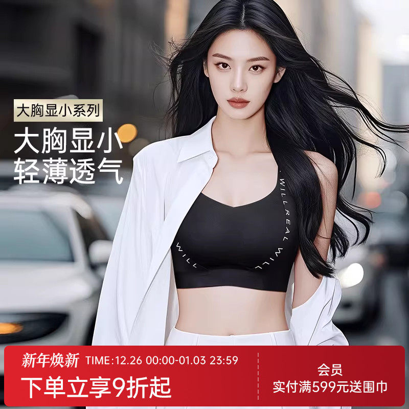 润微提拉内衣女大胸显小防下垂收副乳聚拢运动防震可外穿无痕文胸