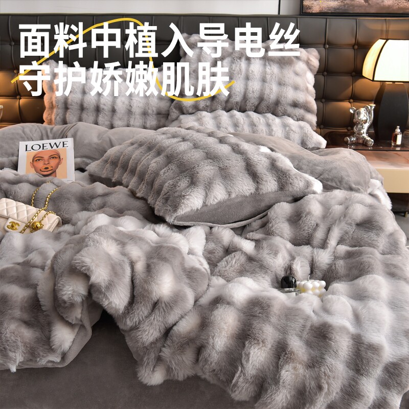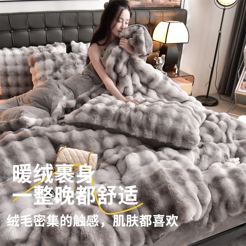 2025新款兔毛绒床上四件套冬季加厚牛奶绒床品珊瑚绒面被套单双人