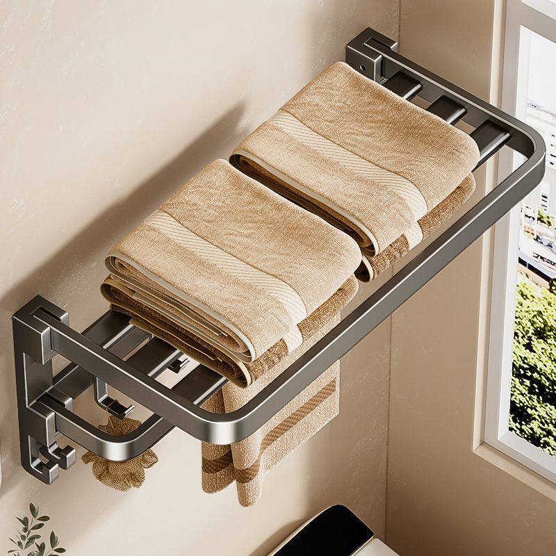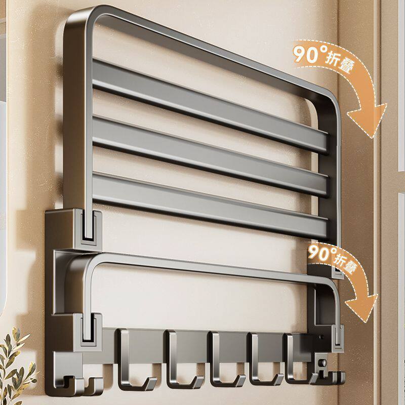 枪灰太空铝可折叠毛巾架免打孔浴室壁挂式卫生间厕所置物架浴巾架
