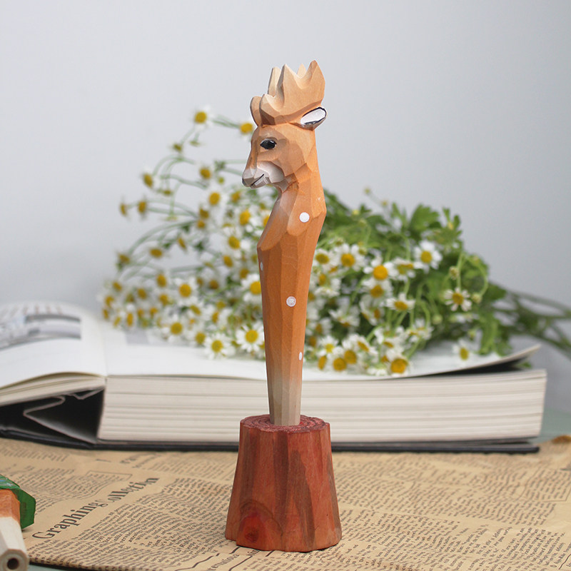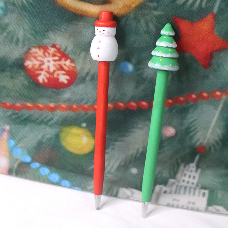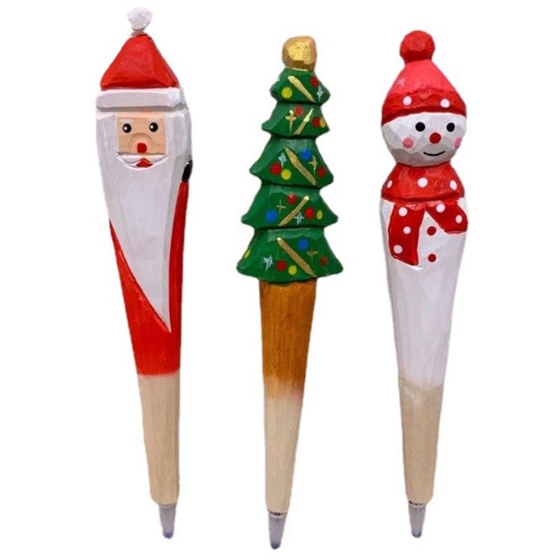 Chumfun 圣诞系列木雕笔原木手绘水性笔圣诞树雪人造型笔可换笔芯