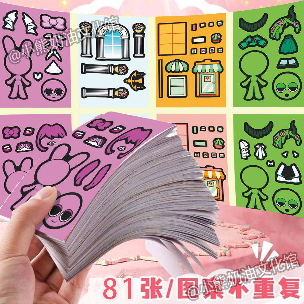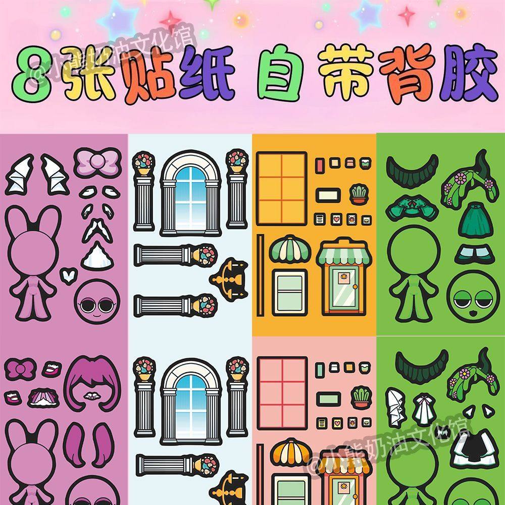 萌崽新款学霸学渣果冻贴纸安静书儿童免裁剪手工粘贴DIY女孩趣味玩具