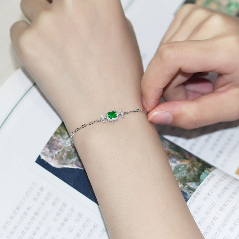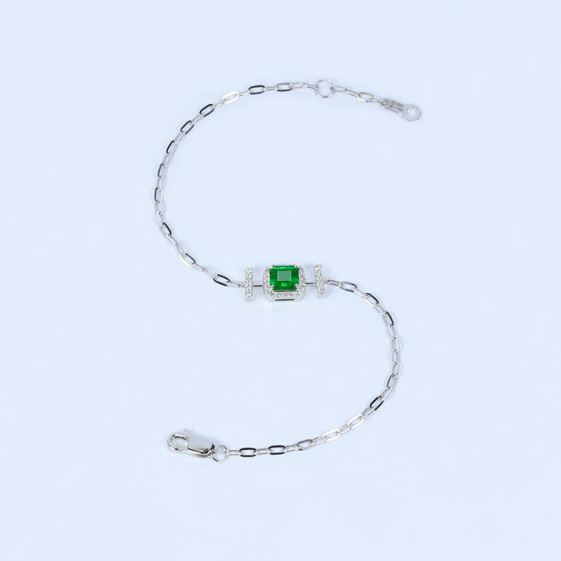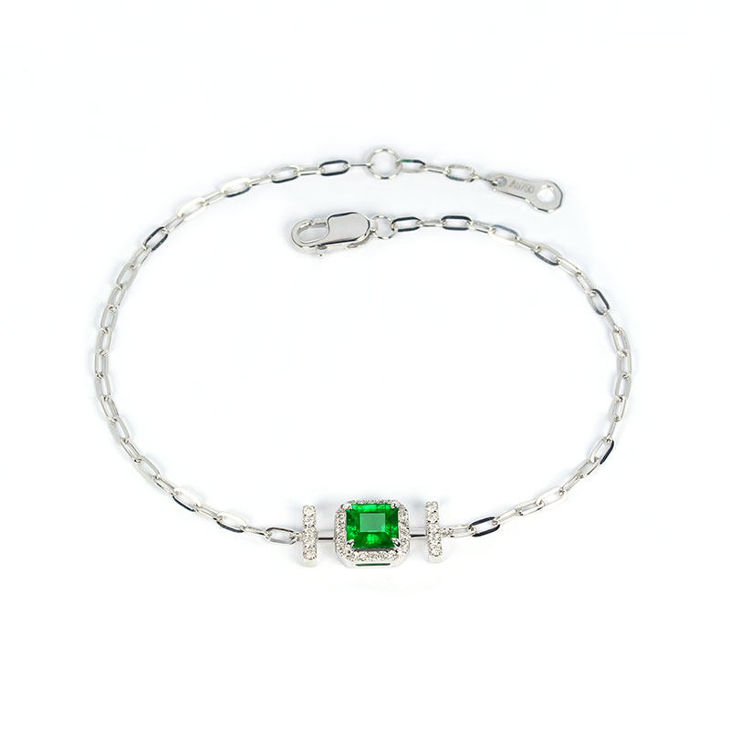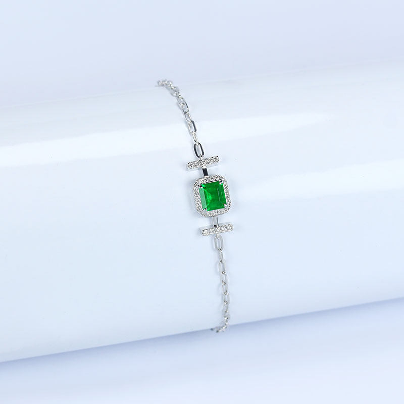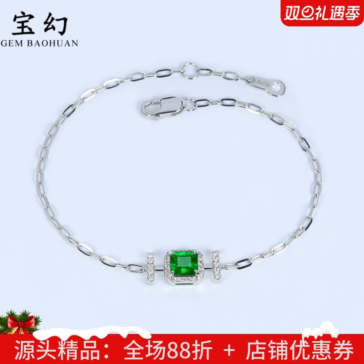 G18K白金赞比亚天然方形祖母绿手链 绿色宝石镶钻石女款手饰正品