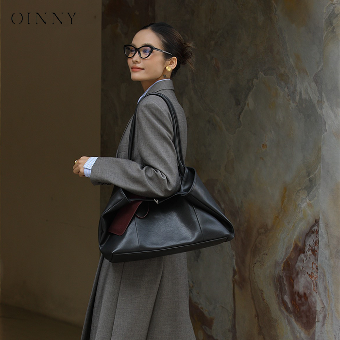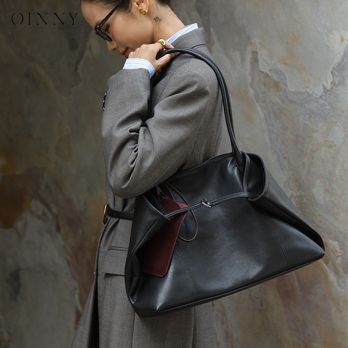【秋冬新款】Oinny托特包高级真皮手提包黑色大容量包包女包6467