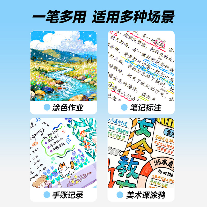新款闪光啫喱笔高光绘画笔学生手账diy荧光笔套装彩色闪光记号笔