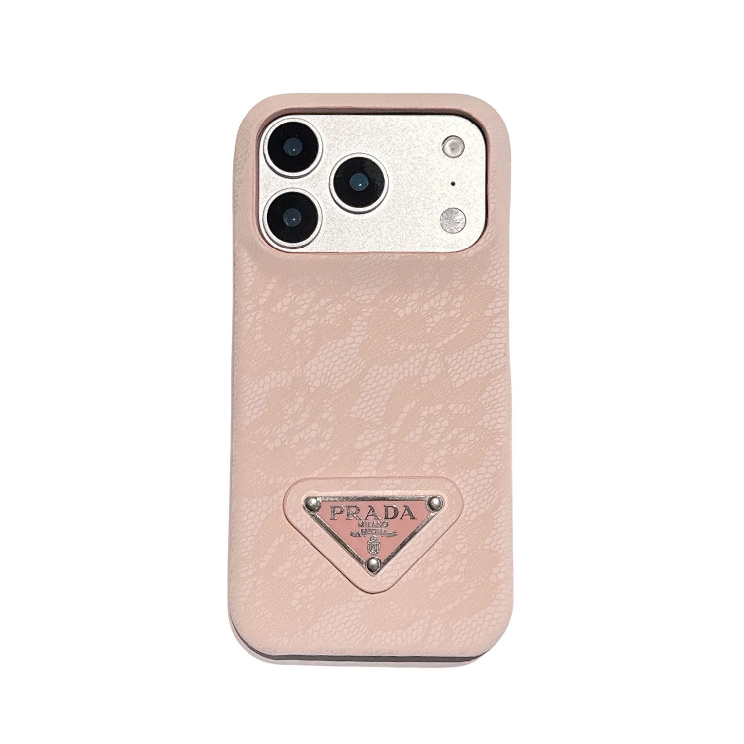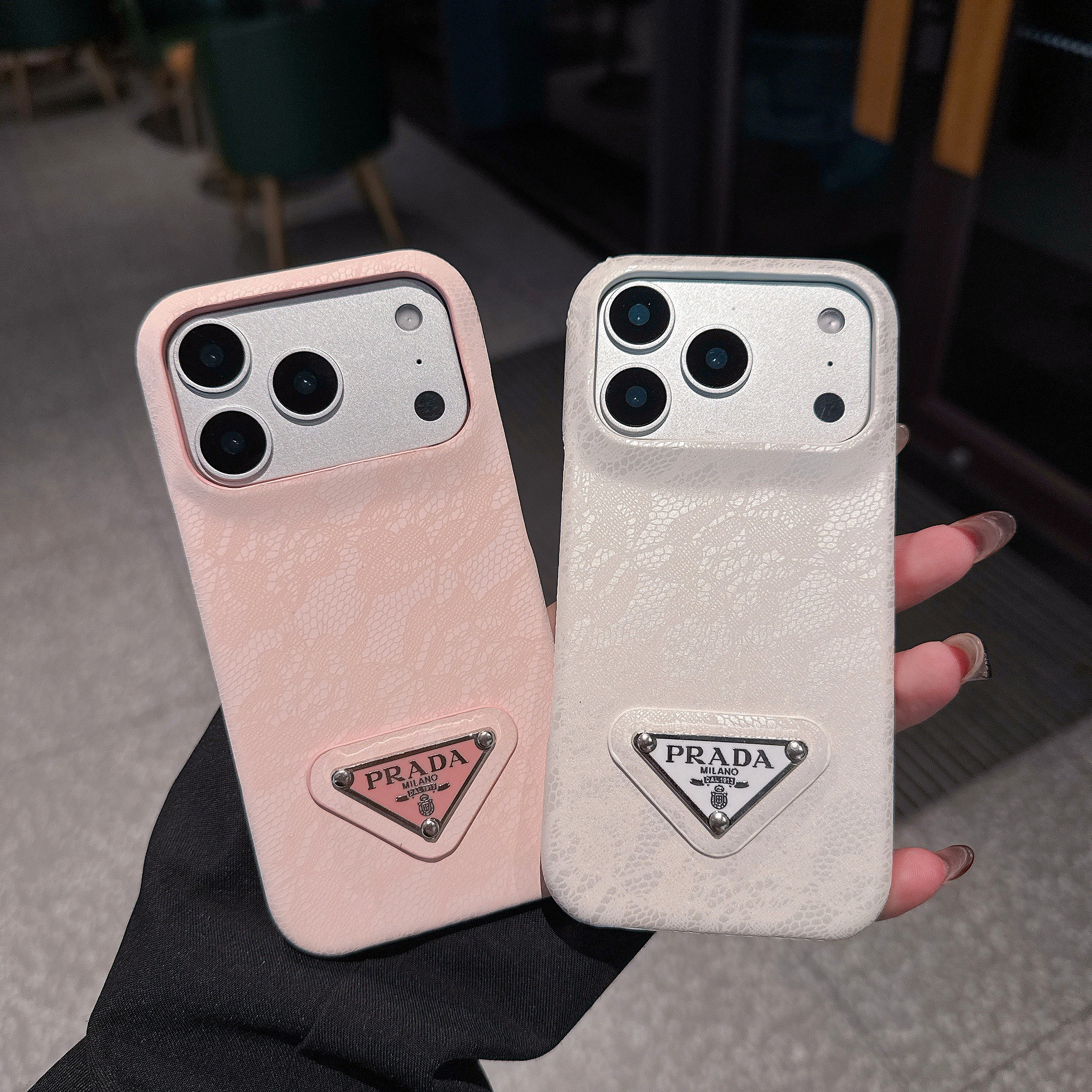 淳于亦大牌简约三角牌适用苹果17promax手机壳15半包按键大视窗14/13创意浪漫蕾丝纹理字母情侣壳16防摔保护