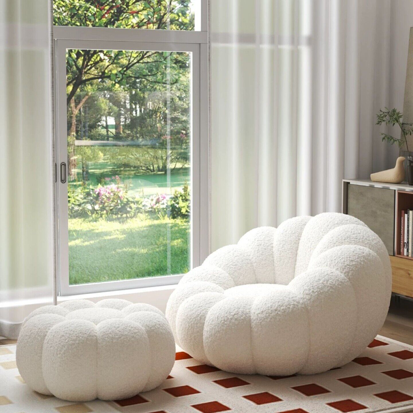 懒人沙发网红南瓜榻榻米单人沙发羊羔绒奶油客厅小户型卧室阳台