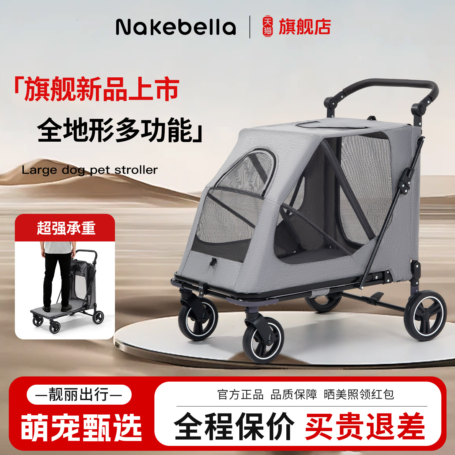 Nakebella宠物推车大型犬巨型老年狗狗推车可折叠外出便携遛狗车