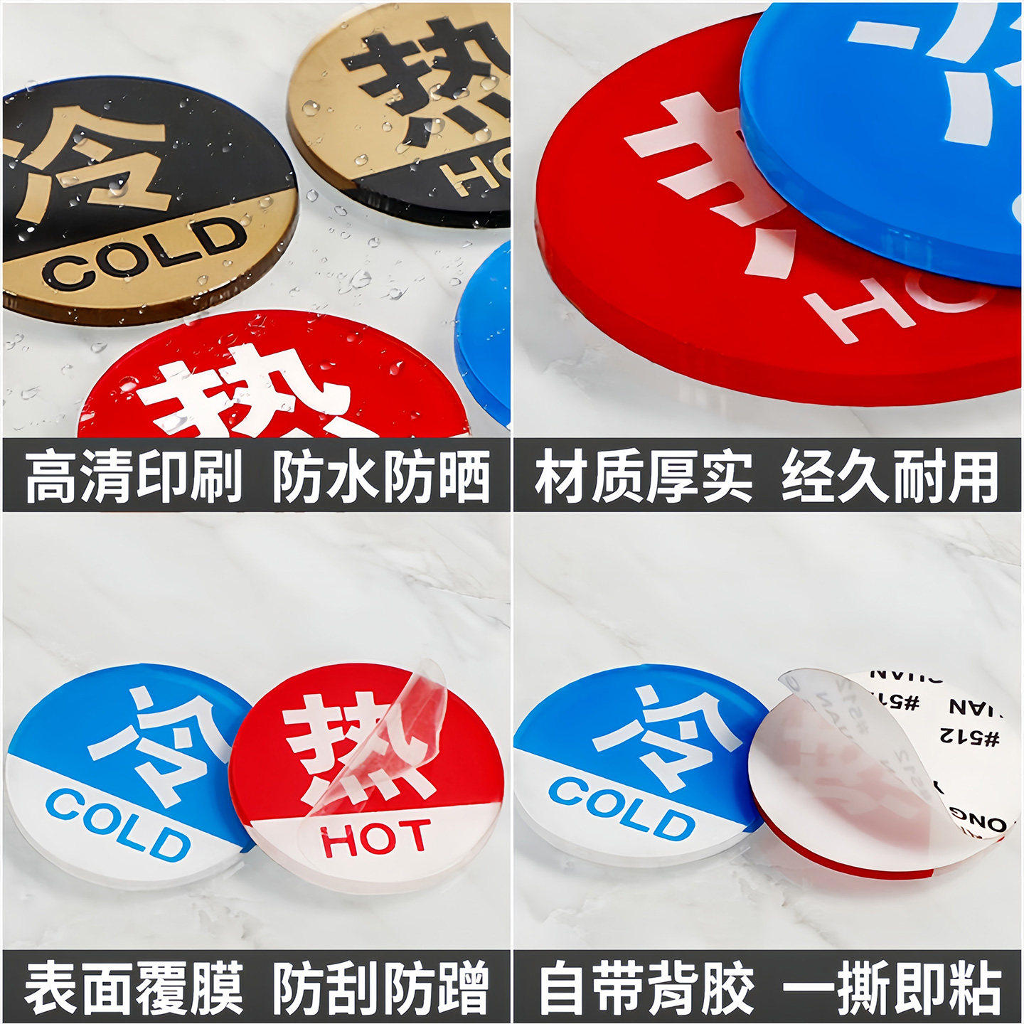 冷热浴室冷水标贴标识标牌家用热水牌子亚克力标志牌水龙头提示牌