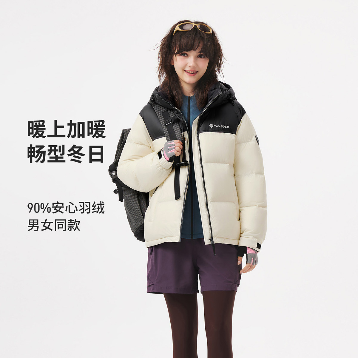 坦博尔短款加厚面包羽绒服男女同款2025新款保暖宽松拼色冬季外套