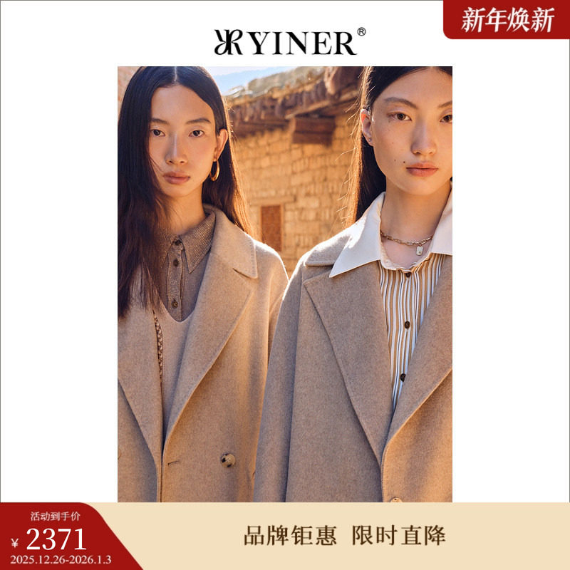 【绵羊毛+山羊绒】YINER音儿女装冬季复古廓形双面呢大衣