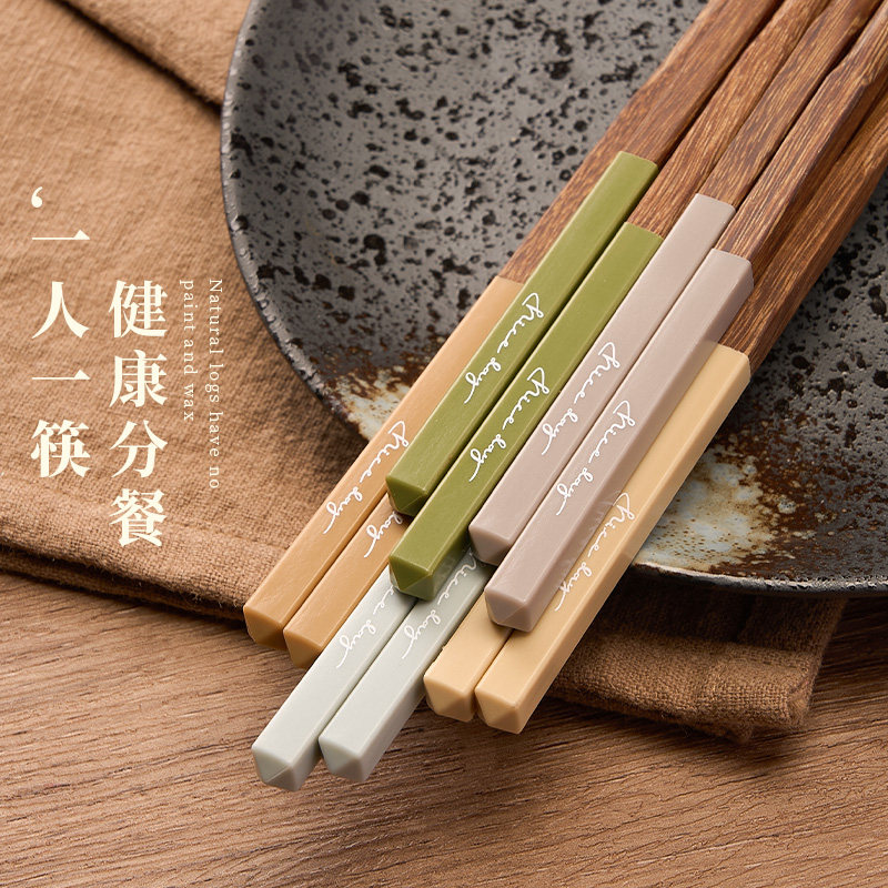 筷子家用高档耐高温竹木筷成人防霉防滑一人一筷分色家庭卫生餐具