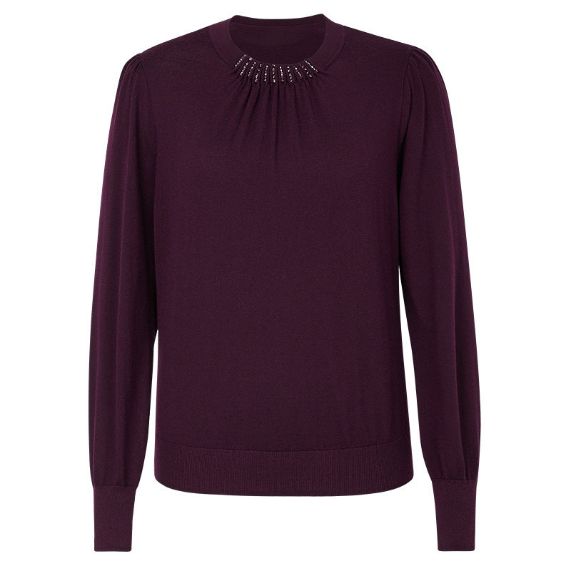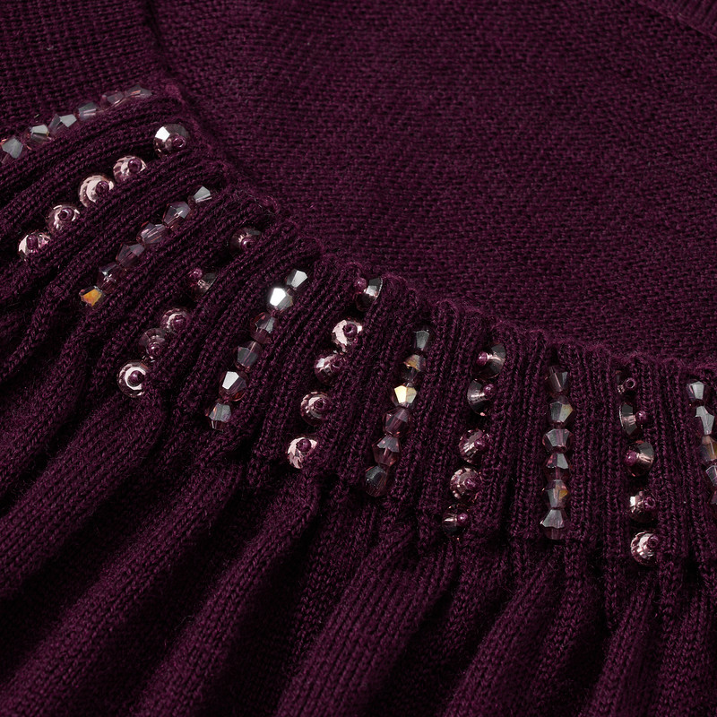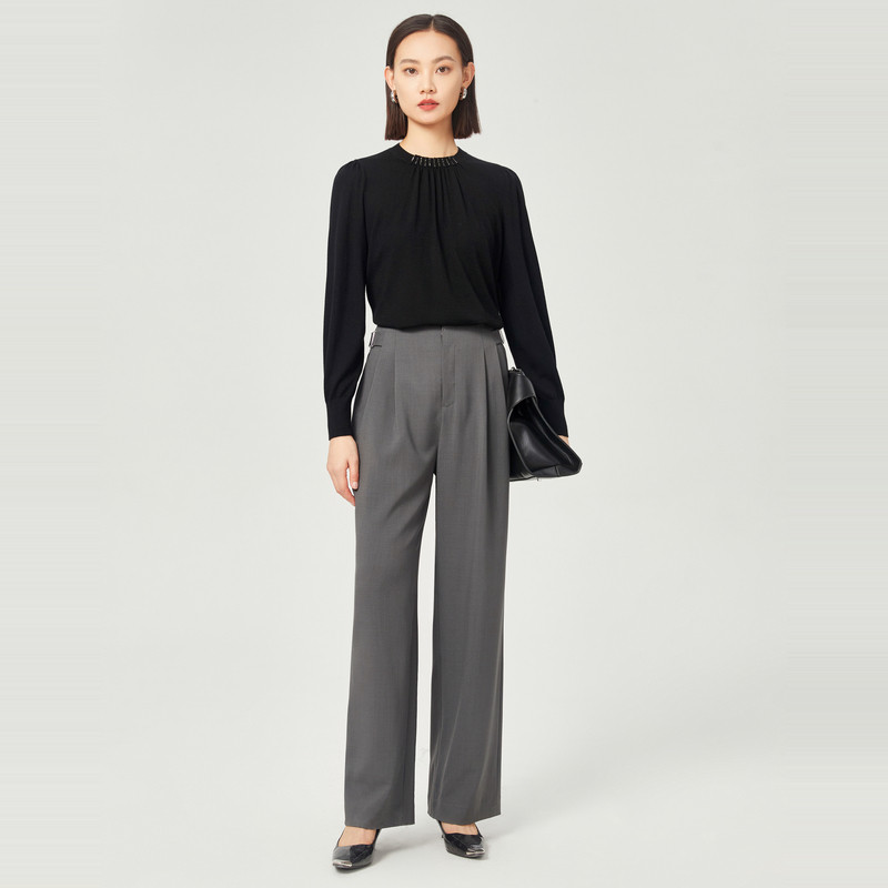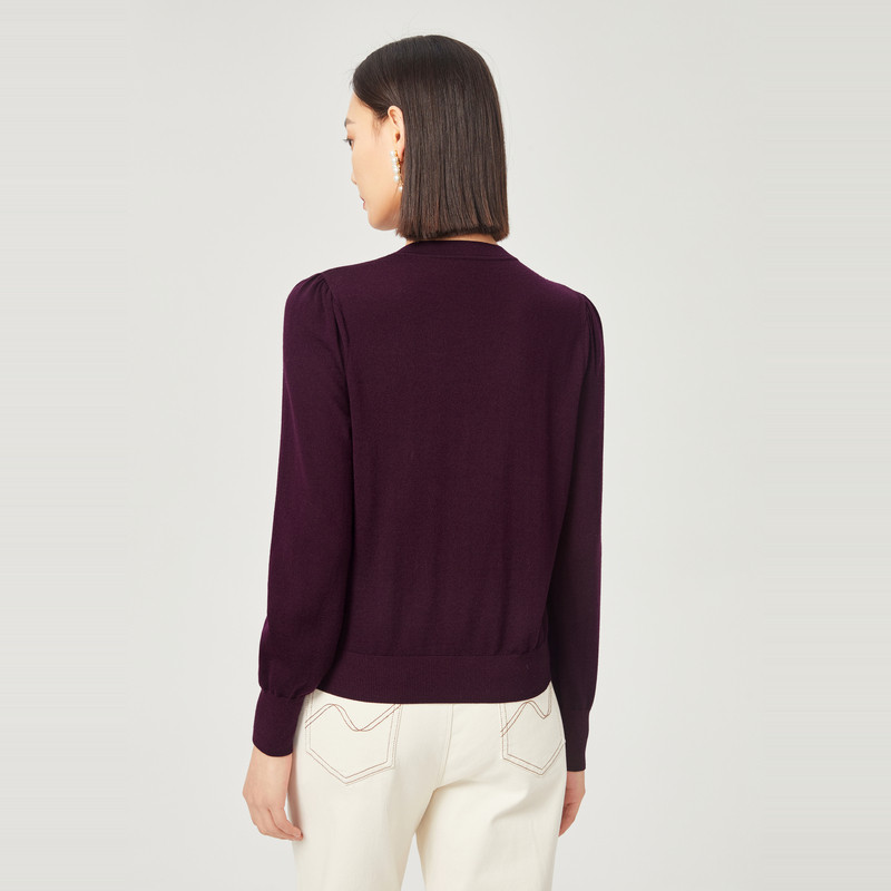 NAERSI娜尔思长袖羊毛针织衫泡泡袖2025年冬季新款领口竖珠上衣女