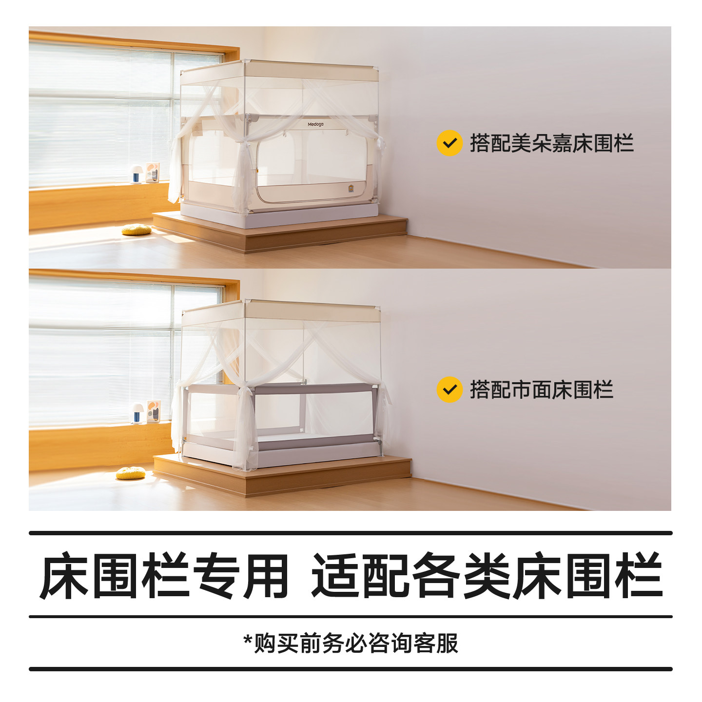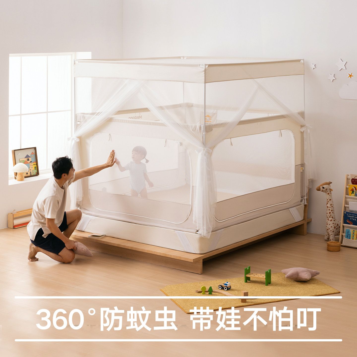 美朵嘉2025新款床围栏通用蚊帐儿童防蚊落地公主风家用卧室三开门