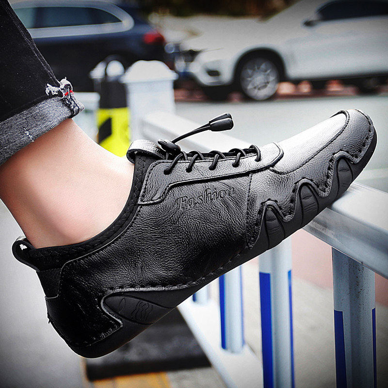 豆豆鞋男士春夏季潮流一脚蹬懒人皮鞋圆头真皮软底驾车鞋时尚男鞋