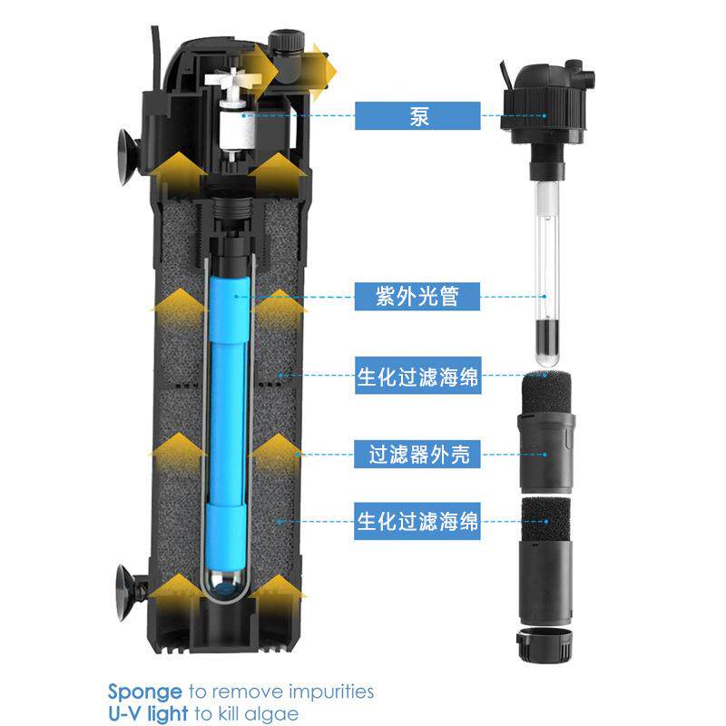 拉车亚马逊鱼缸过滤器过滤系统UV杀菌制氧三合一静音鱼缸水泵带过