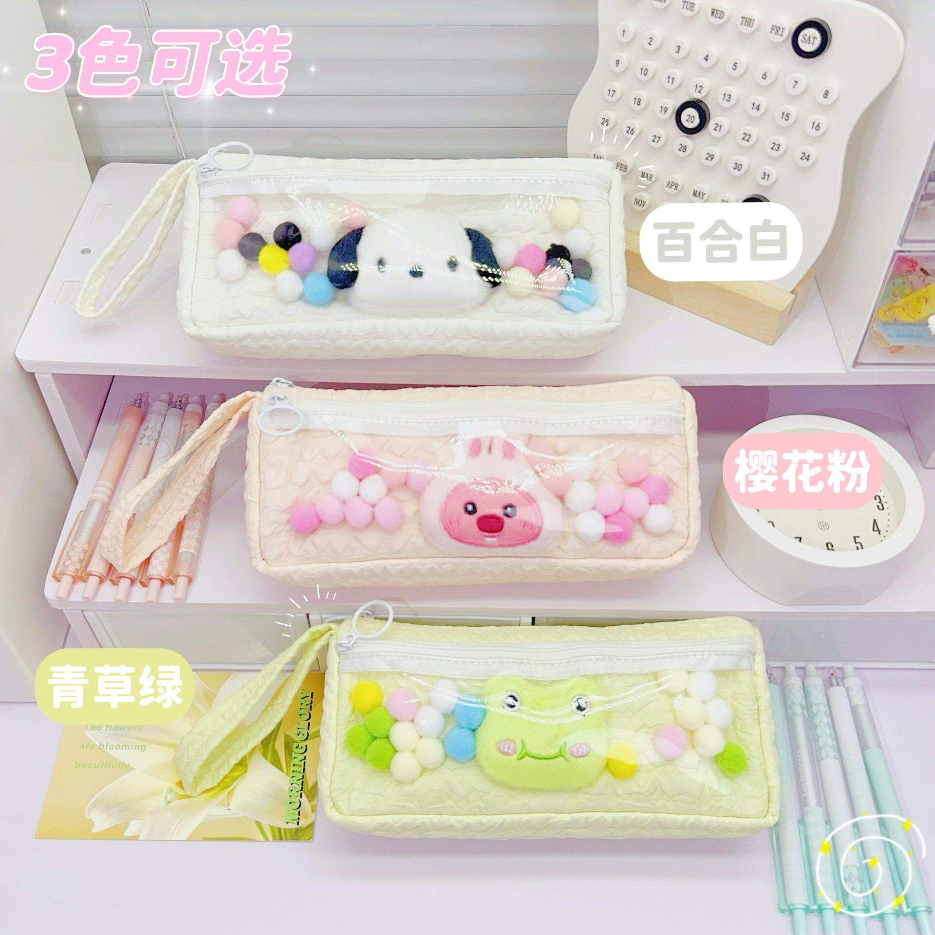 简约小清新学生用文具收纳袋卡通可爱高颜值帕恰狗透明大容量笔袋