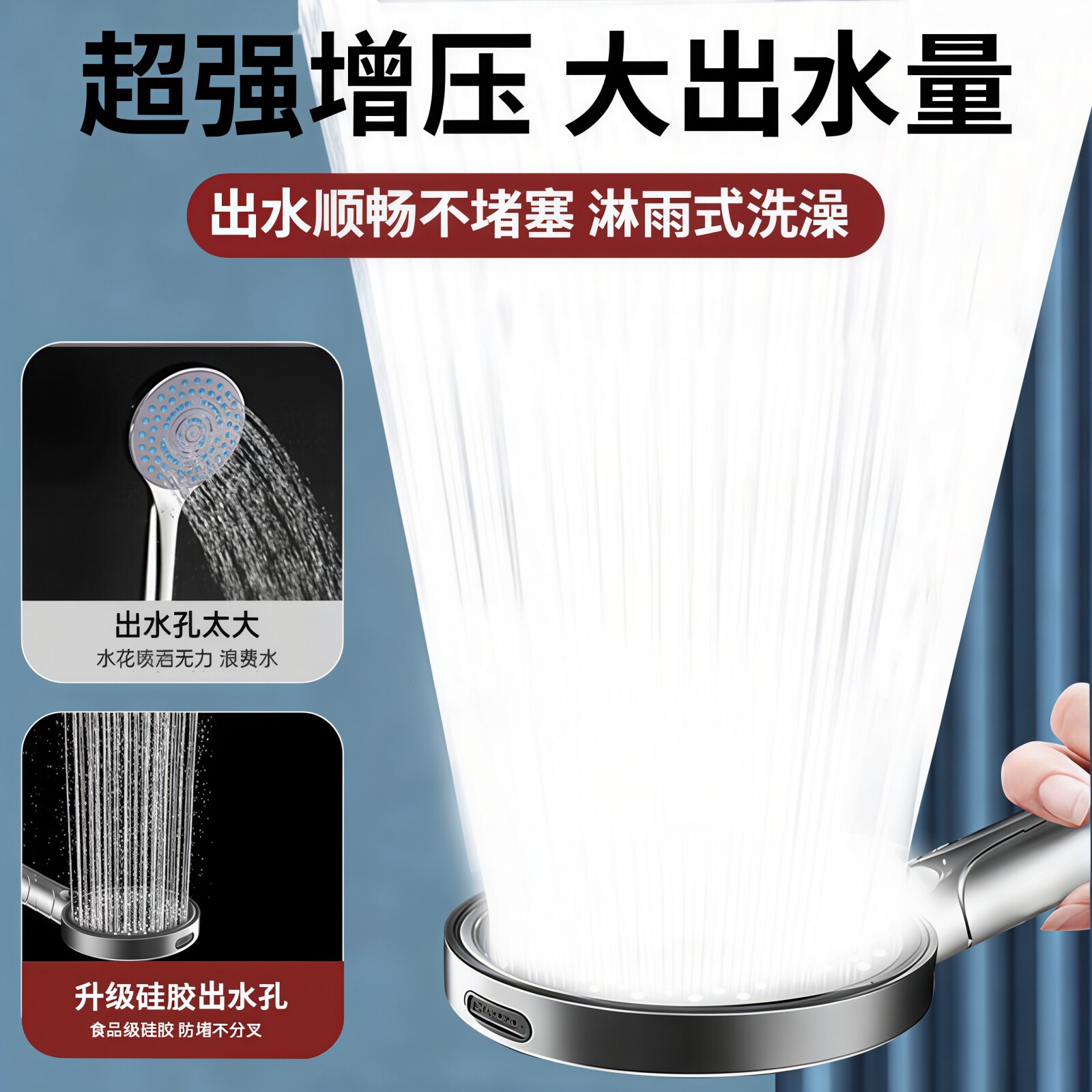 SUPOR/苏泊尔增压花洒喷头家用浴室洗澡淋浴沐浴加压手持莲蓬头