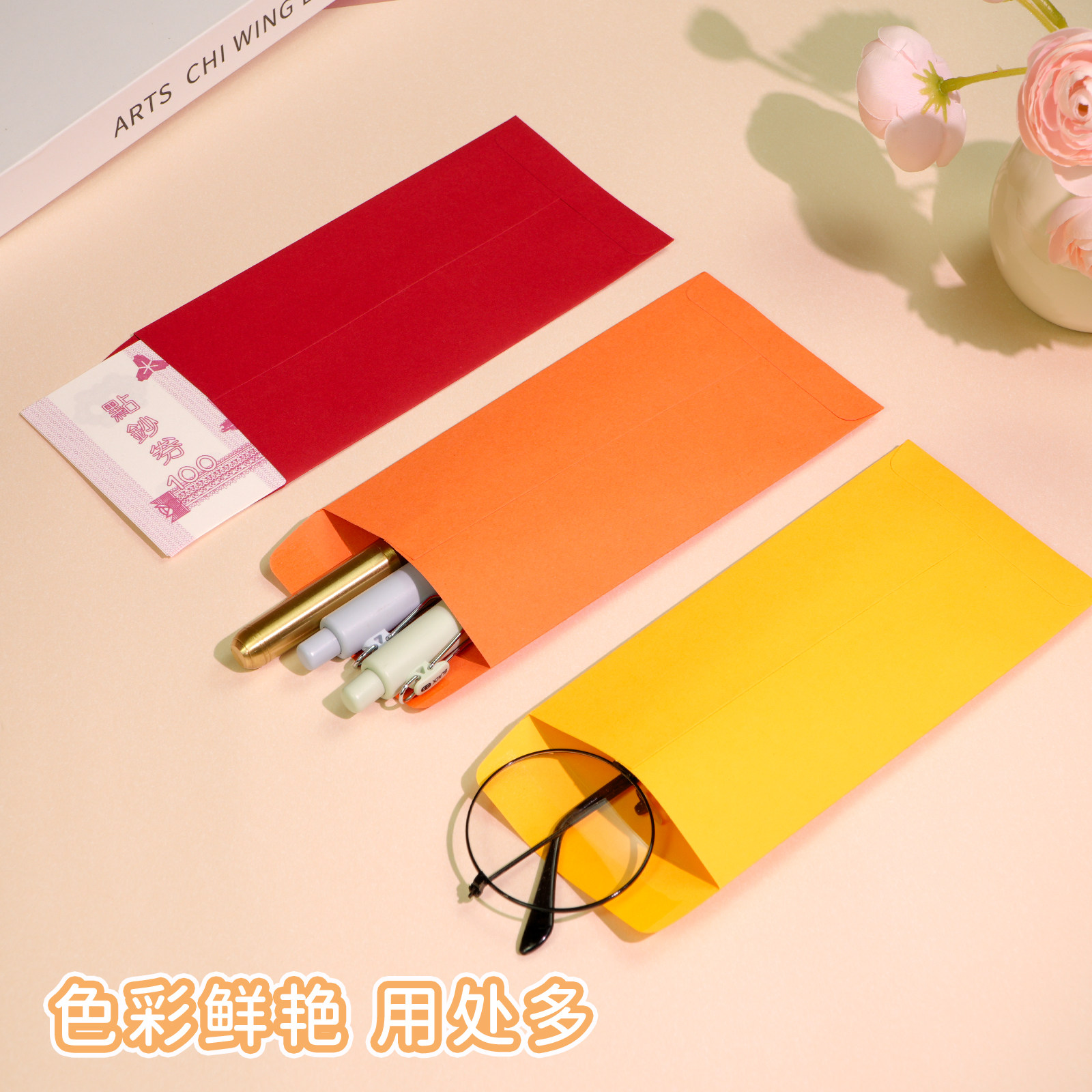 彩色信封自粘中式空白口水胶信封装美钞的现金收纳彩胶纸存钱信封