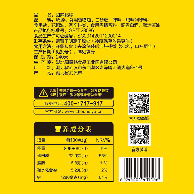 周黑鸭真空颗粒鸭脖锁骨480g鸭货卤味解馋零食武汉特产鸭肉夜宵