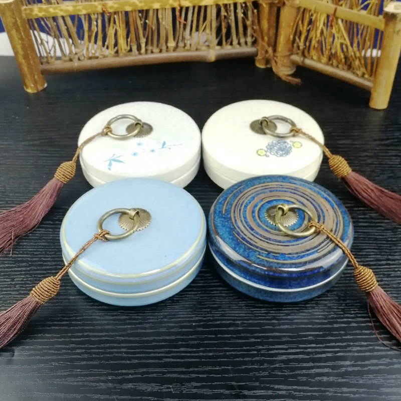 陶瓷火锅砚台带盖书法墨池墨盒双圈不干墨墨碟防蒸发保湿