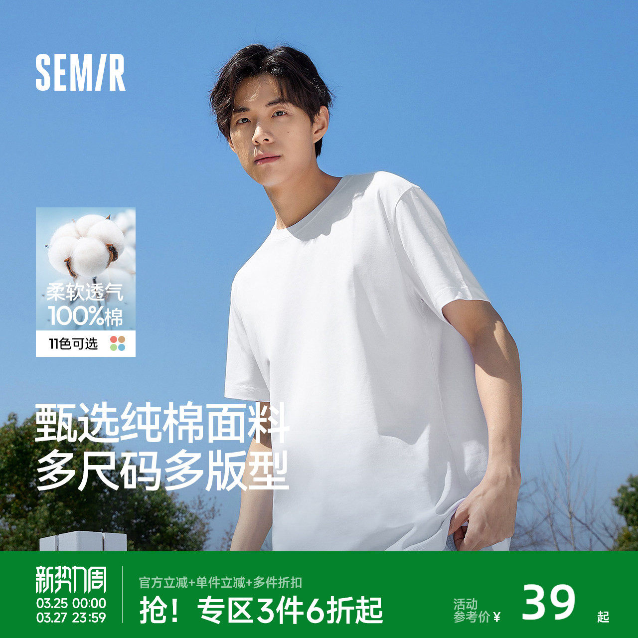 森马短袖T恤男装新款纯棉半袖情侣纯白圆领凉感白t休闲打底衫贴身