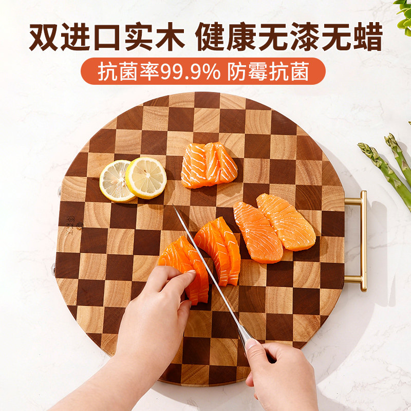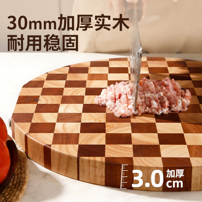 原森太圆形棋盘格菜板防霉抗菌家用食品级厨房砧板实木切菜板案板