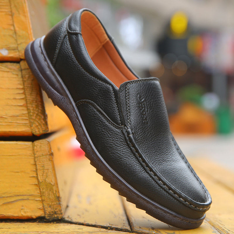 奥康官方男鞋春秋季真皮商务休闲皮鞋时尚套脚平底脚蹬舒适爸爸鞋