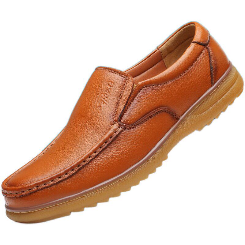 新款休闲皮鞋男真皮韩版潮流商务厚底轻质橡胶发泡底一脚蹬乐福鞋