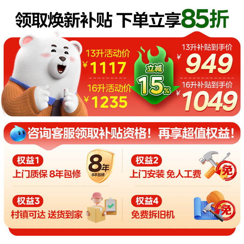 美的燃气热水器家用天然气13/16升水伺服恒温即热式官方旗舰店RF3