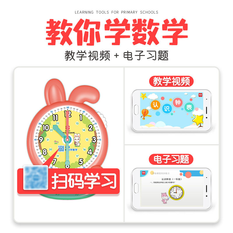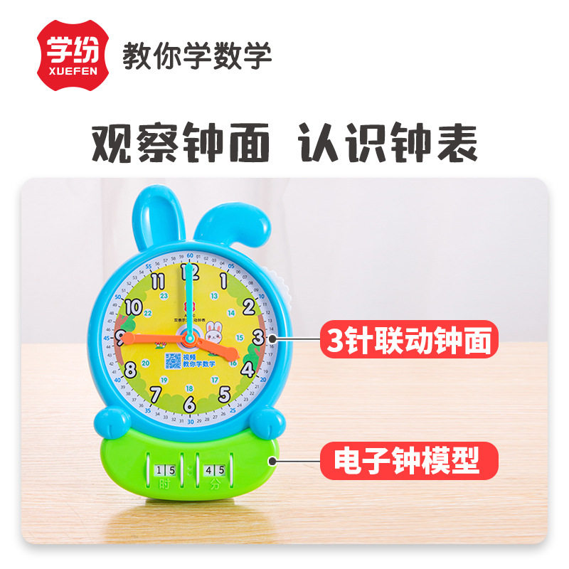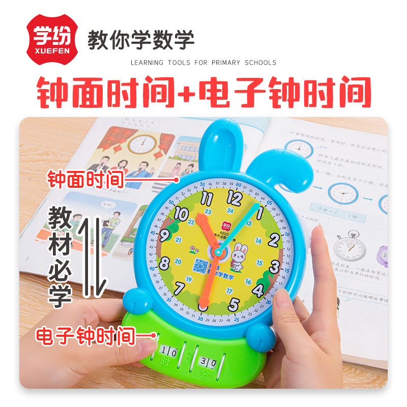 学纷电子钟模型钟表学习器24时三针联动秒针可拆一二年级数学教具