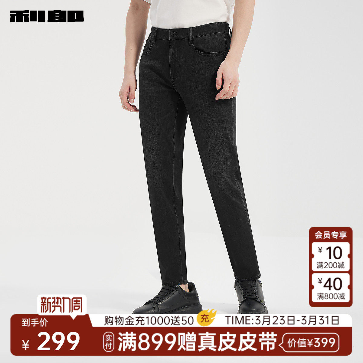 【四面弹力】利郎官方 低腰牛仔裤男士猫须修身春季新款九分裤子