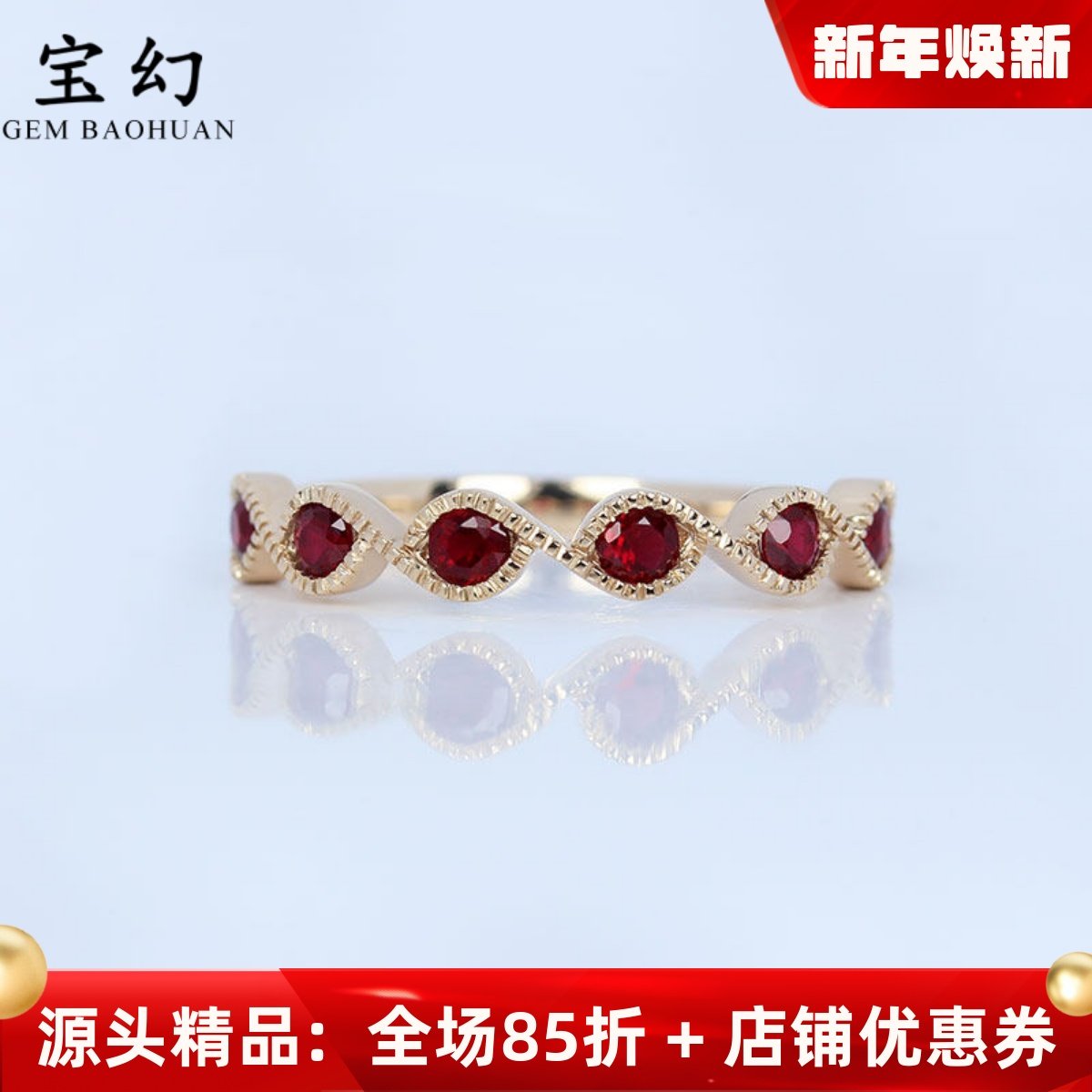 18K玫瑰金天然鸽血红宝石蕾丝排戒 柔美彩金尾戒指环叠带女款定制