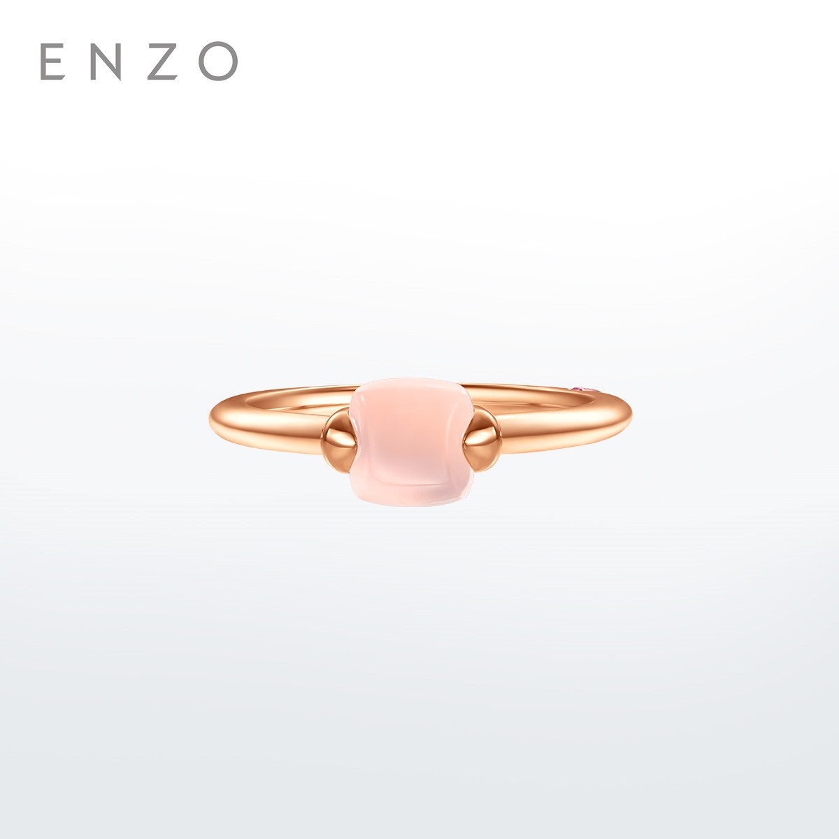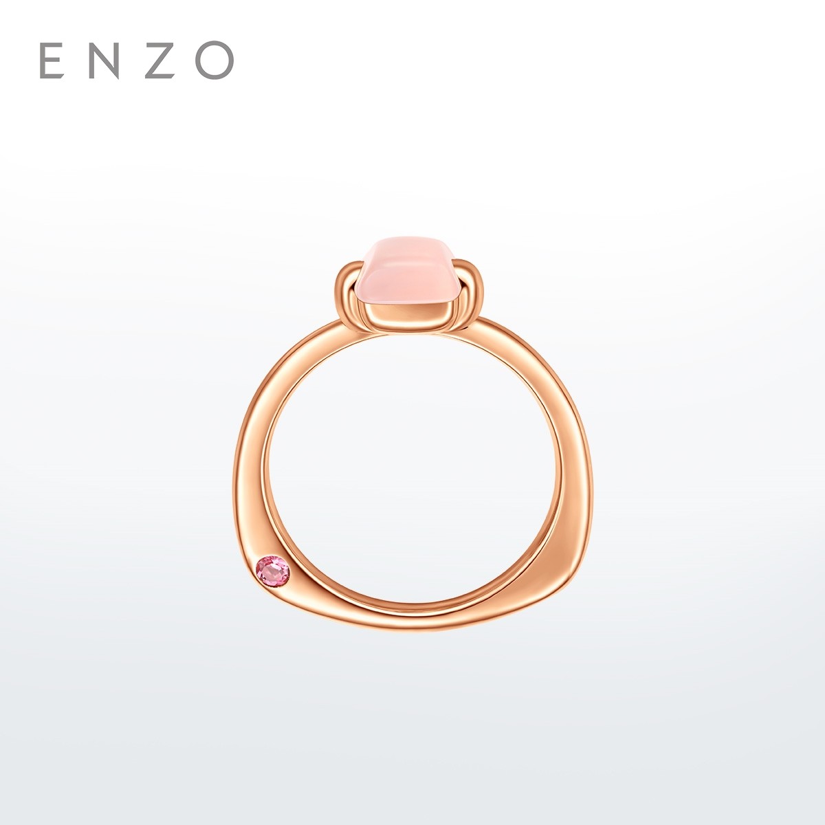 新款ENZO 桃花粉果冻方糖 VAVA系列 18K金芙蓉石戒指女新年礼物