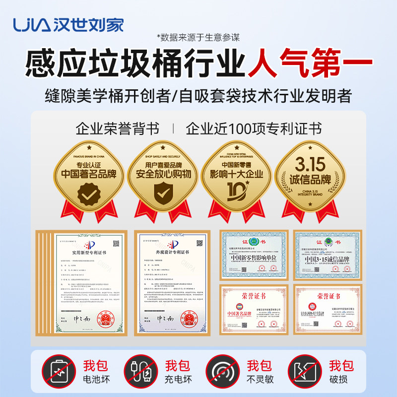 汉世刘家智能垃圾桶感应式家用2025新款厕所卫生间客厅全自动电动