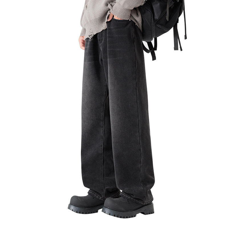 复古直筒牛仔裤男款春季宽松美式百搭裤子潮牌水洗做旧阔腿长裤子