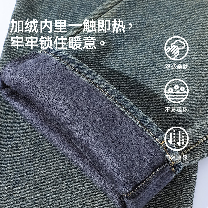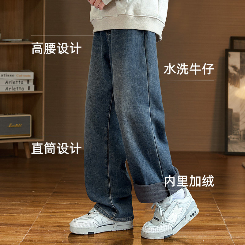 加绒加厚牛仔裤男冬季新款复古宽松休闲长裤潮流百搭直筒阔腿裤男