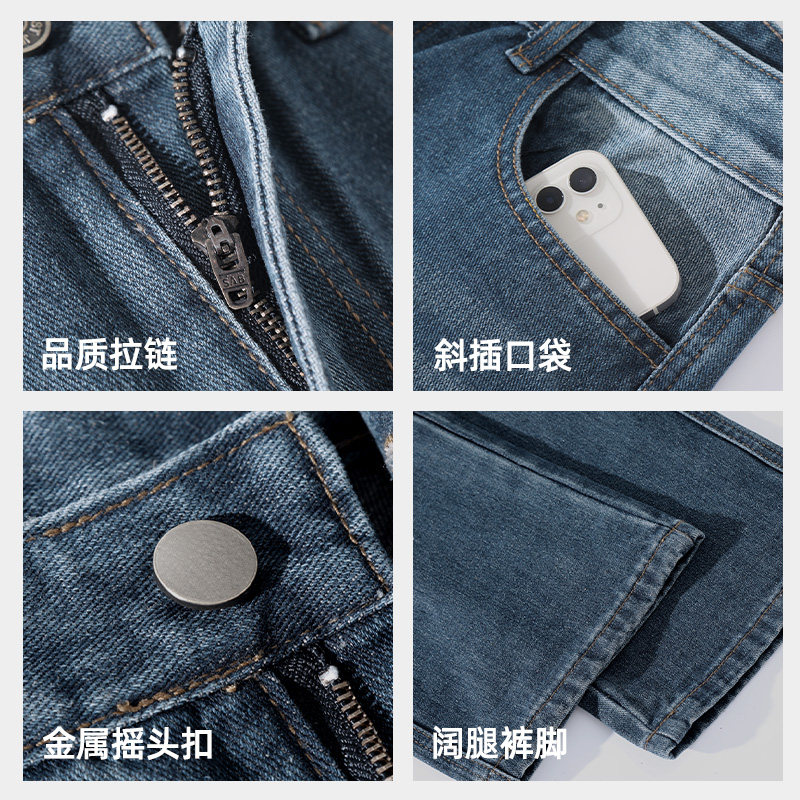 阔腿牛仔裤男士2025春秋新款美式复古宽松大码冬季休闲直筒裤子男