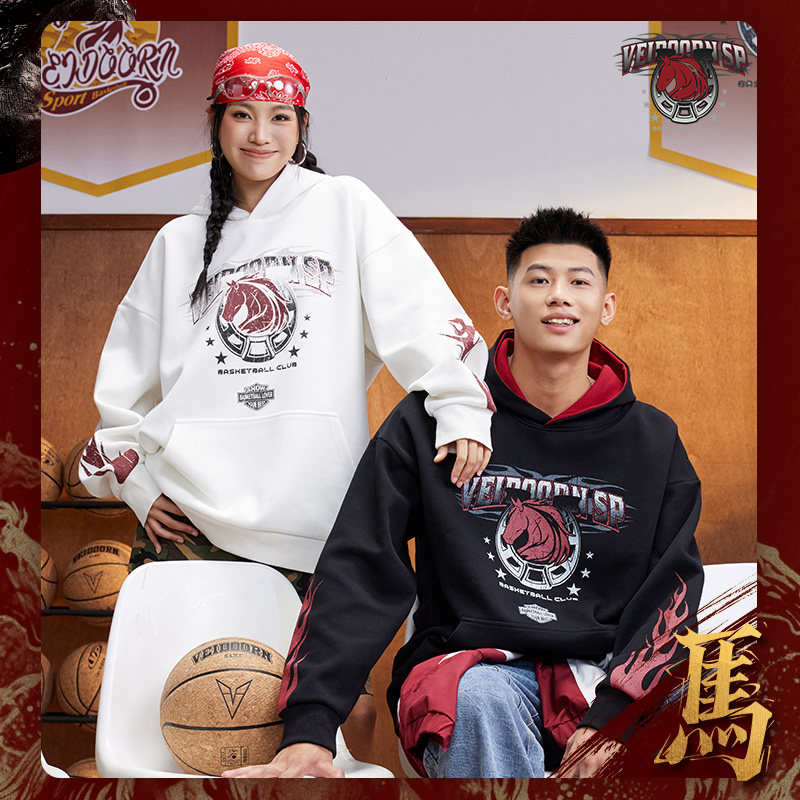 维动腾瑞马年限定连帽卫衣美式潮牌百搭男秋高街复古宽松运动长袖