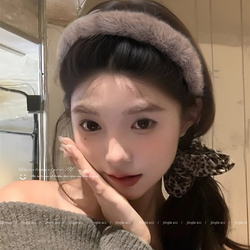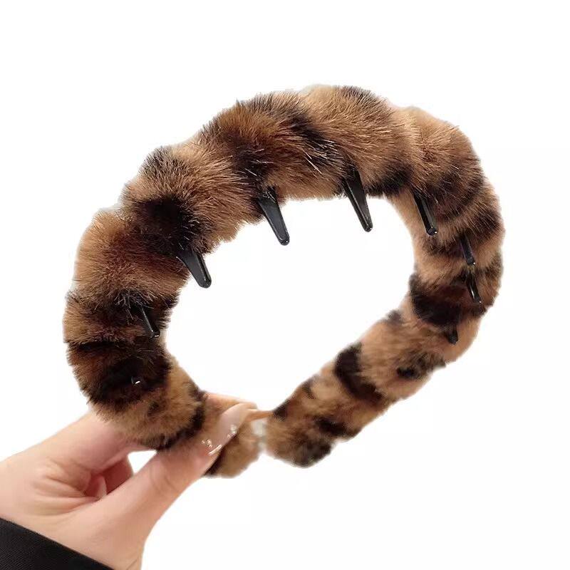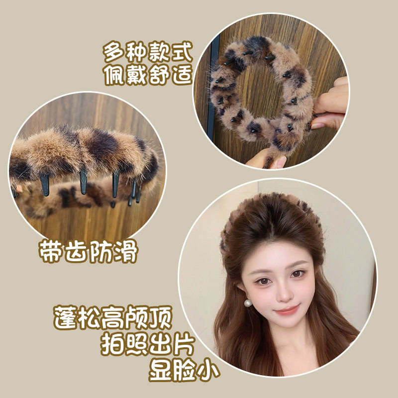 毛绒豹纹发箍女款洗脸头箍女高级感洋气时尚发卡显脸小高颅顶防滑