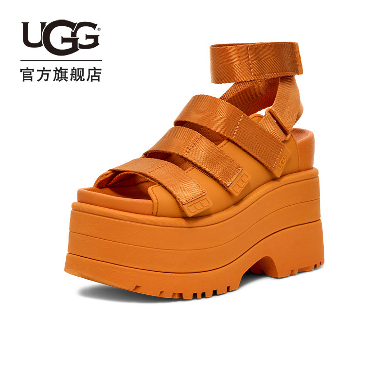 UGG夏季新款女士时尚舒适炫金系列纯色厚底绑带休闲凉鞋 1167431