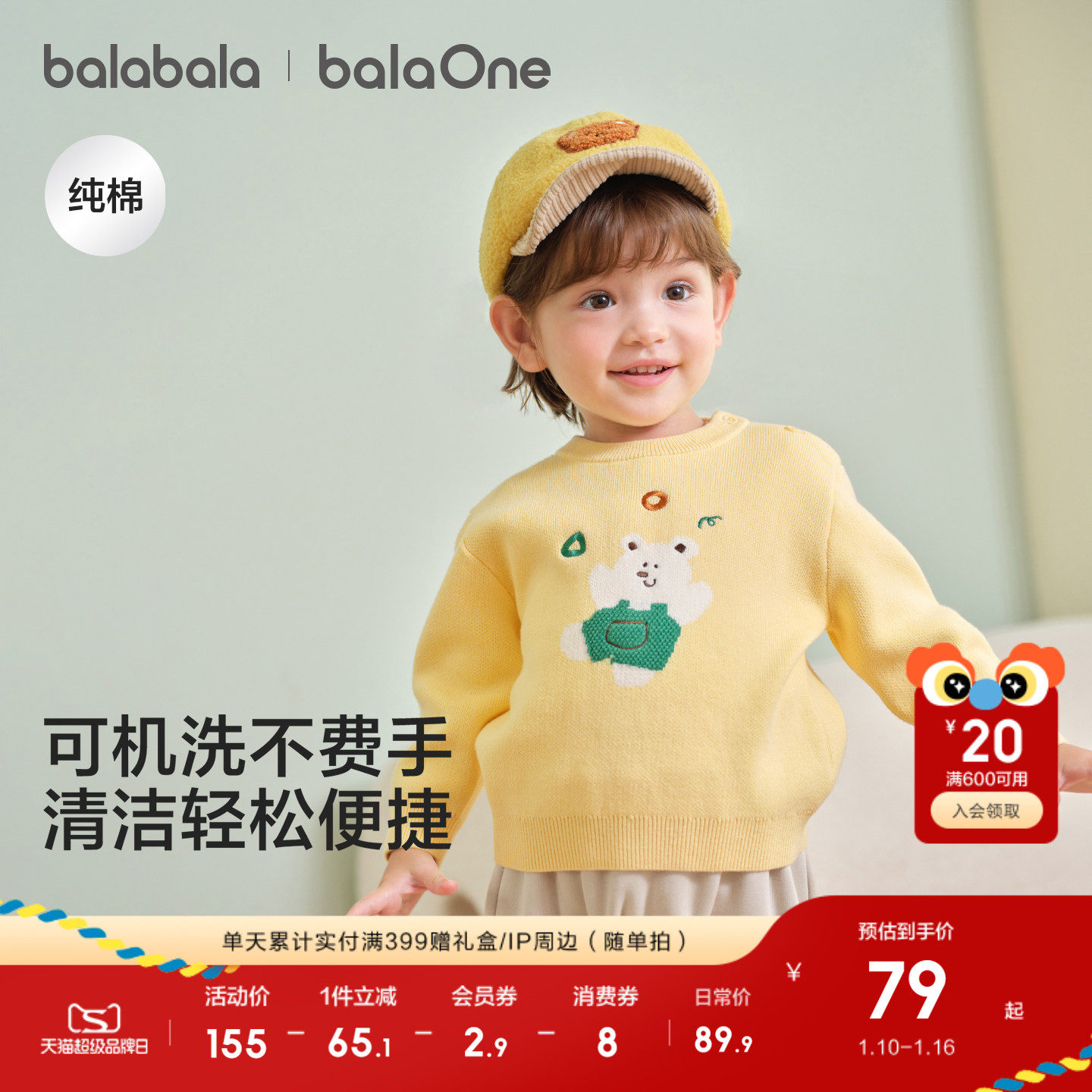 巴拉巴拉童装宝宝毛衣儿童针织衫男童女童2025新款冬季纯棉打底衫