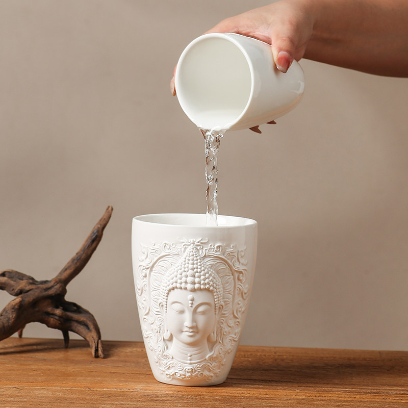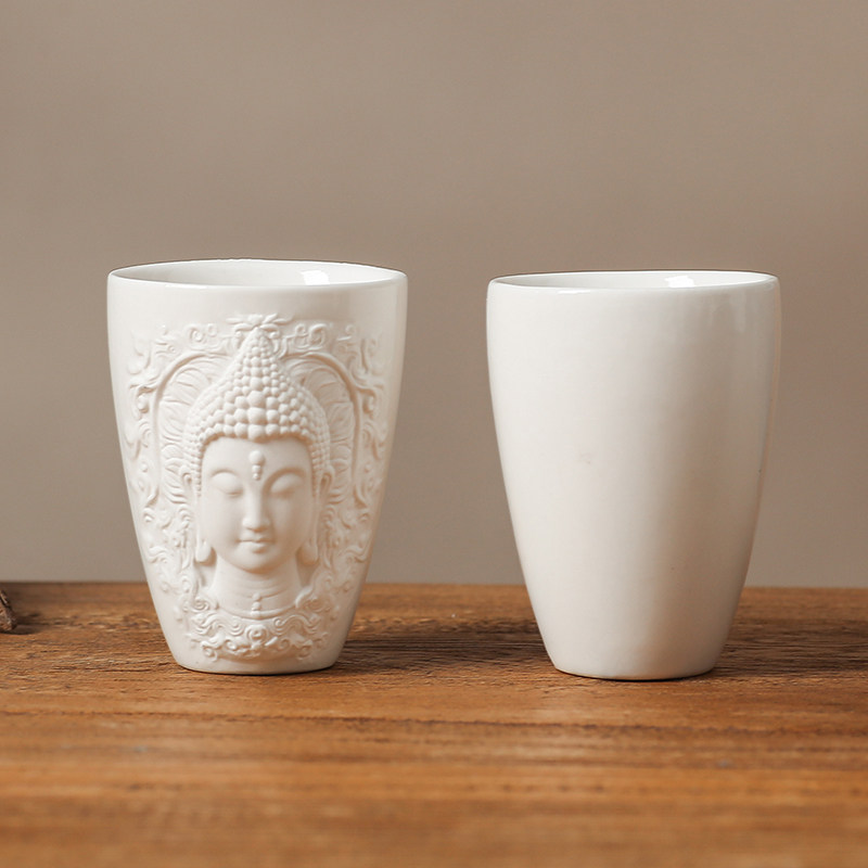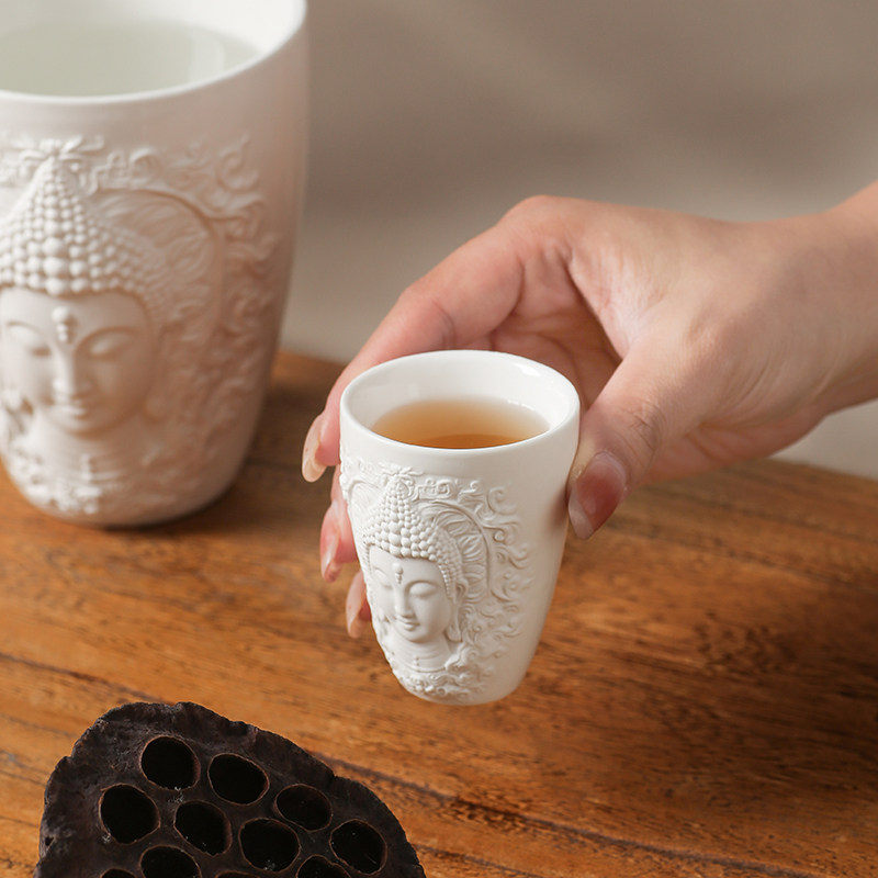 浮雕轻奢佛像茶杯精美功夫茶具品茗杯主人杯禅意水杯精致闻香杯