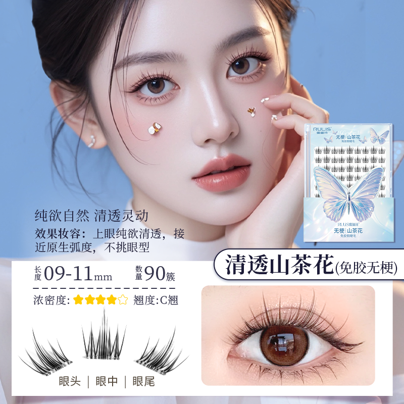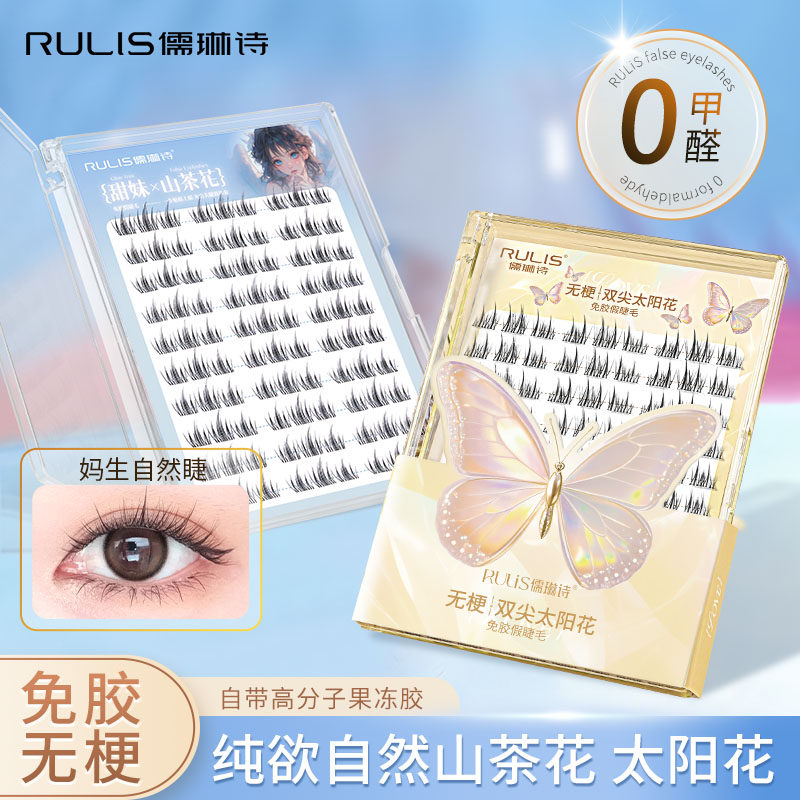 无梗免胶假睫毛太阳花山茶花漫画感仿真大容量超自然自粘胶水镊子