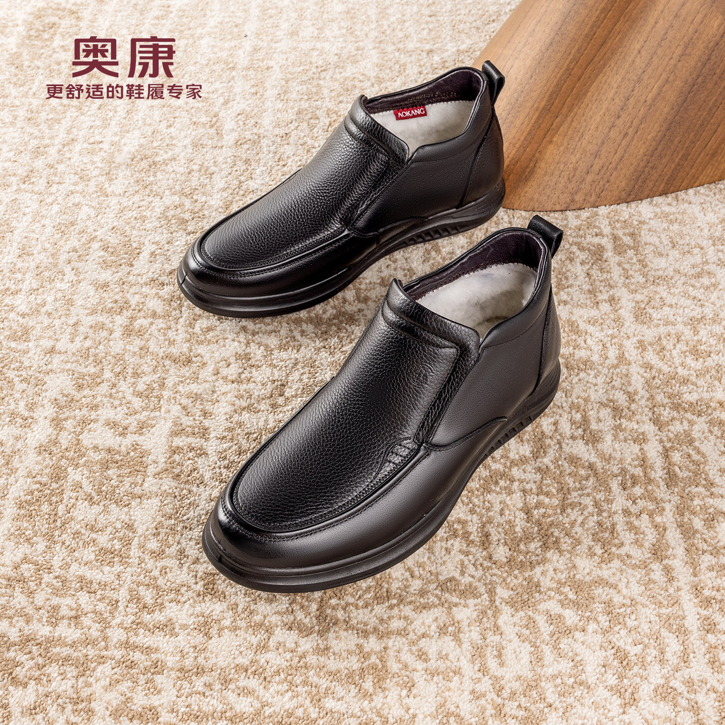 奥康 男鞋2025冬季新款正装皮鞋加绒保暖舒软爸爸棉鞋门店发货