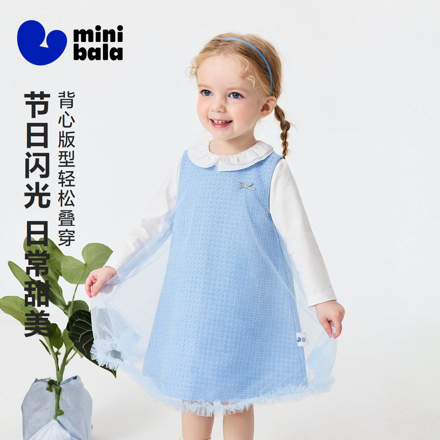 迷你巴拉巴拉女童宝宝裙子儿童甜美小香风连衣裙拼接网纱裙2026春