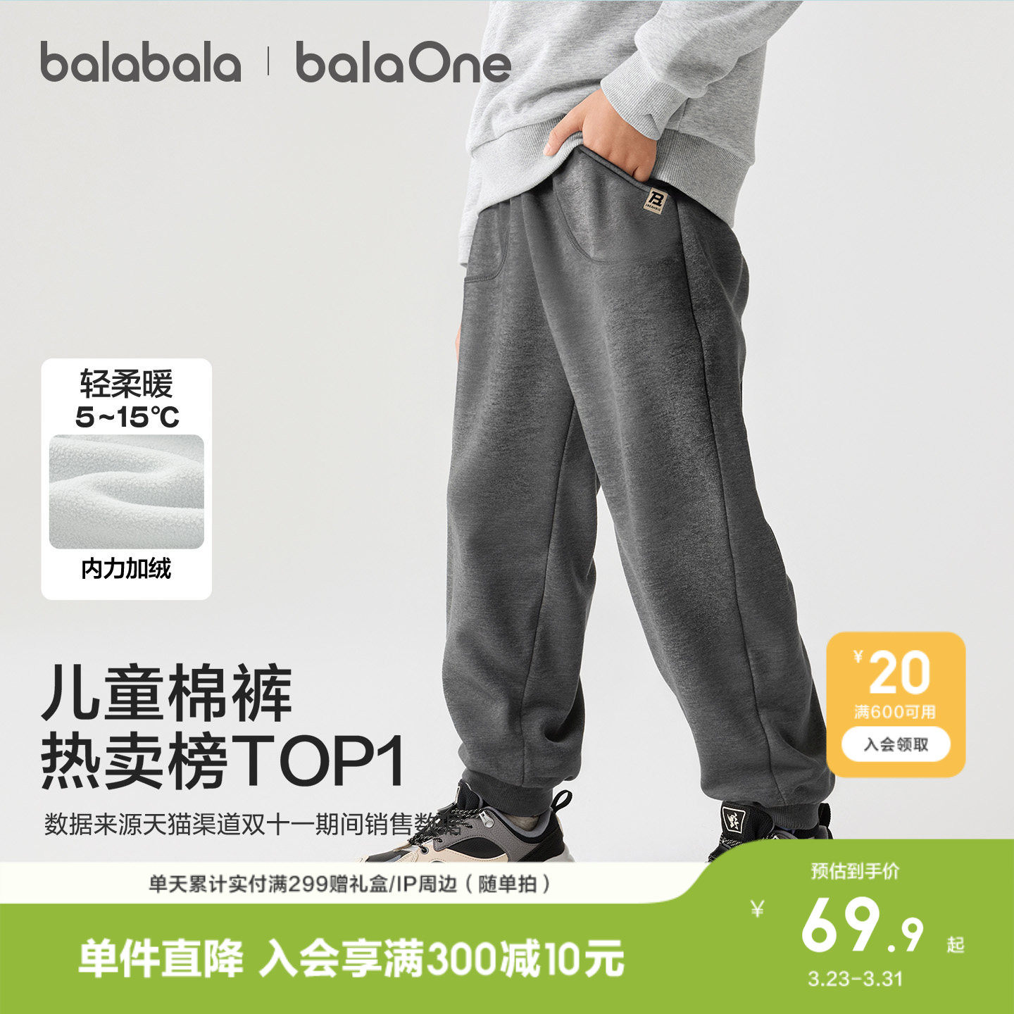 巴拉巴拉童装儿童加绒裤子女童2026秋冬装百搭运动休闲一体绒长裤