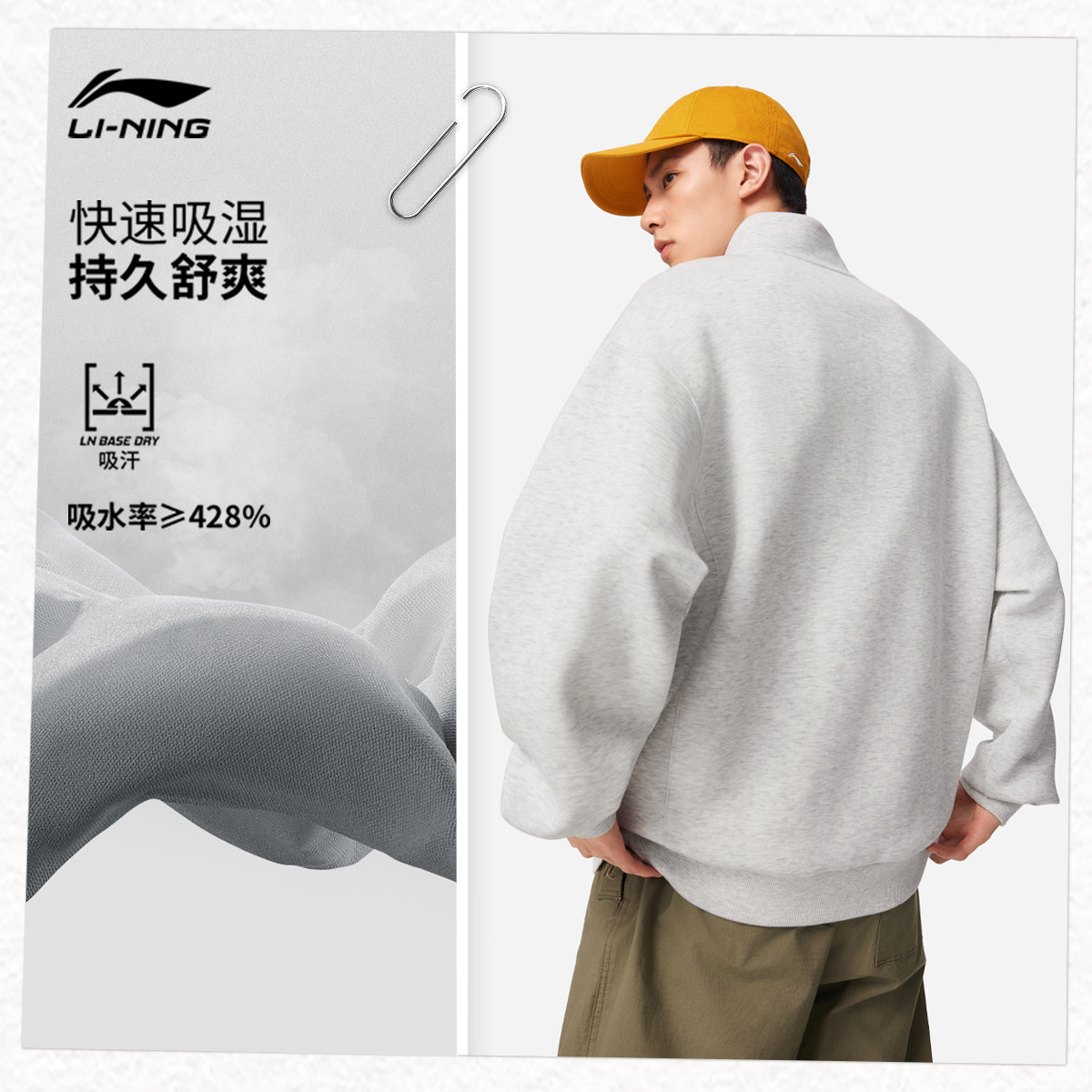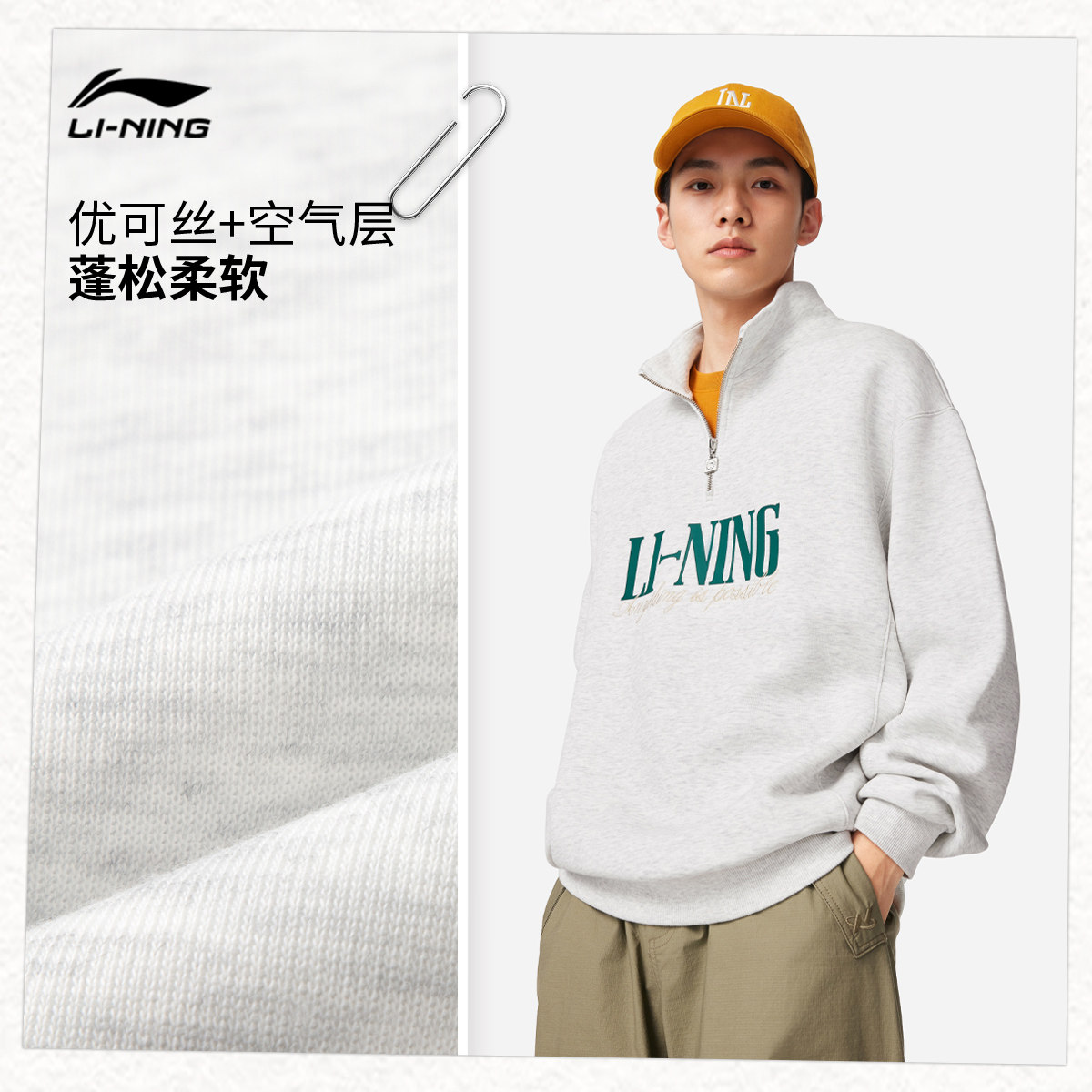 李宁半拉链卫衣男春季2026新款宽松情侣上衣休闲长袖女针织运动服