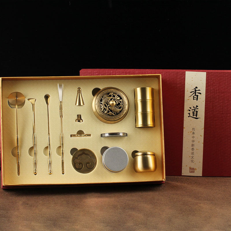 黄铜镂空香篆套装拓篆工具黄铜香篆打打室内家用篆香薰炉十二件套